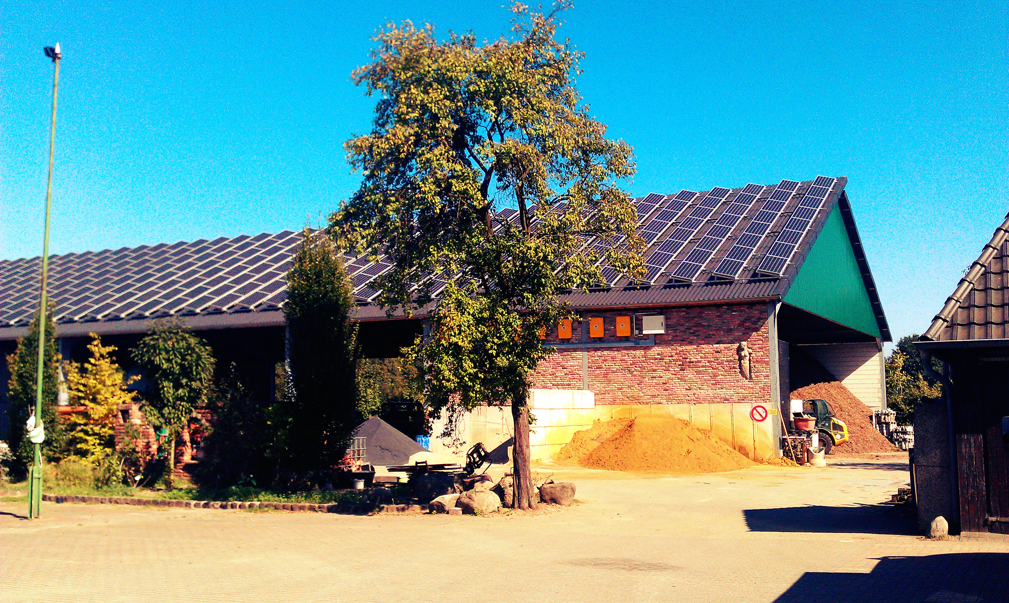 Durch die Installation einer PV-Anlage auf dem 57 m x 30 m Dach unserer Halle gewinnen wir umweltfreundlichen Strom und tragen somit unseren Teil zur Umweltschonung bei.